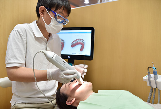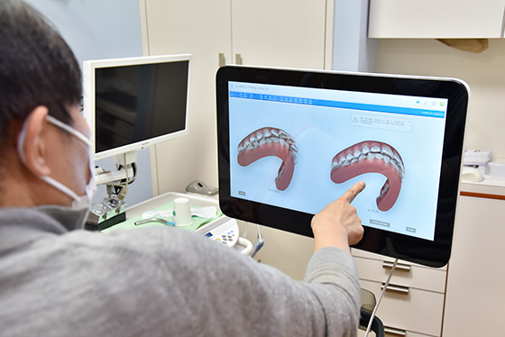 口腔内スキャナー(iTero)を使ってスキャンを行います。患者さまの現在の歯並びや咬み合わせを分析し、適切な治療法をご提案させていただきます。また、口腔内とお顔の写真もこちらで撮影させていただきます。