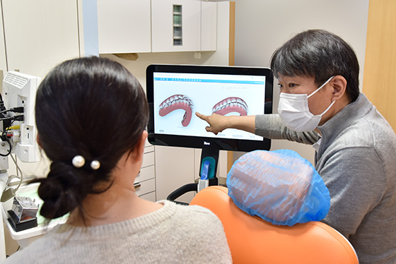 患者さまの歯の配置に関するご不安やご要望を丁寧にお聞きし、十分に確認させていただきます。歯科医師が歯の配置を確認し、治療の手順や所要時間、費用の見積もりをご説明いたします。